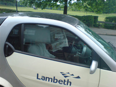 The incident occurred at Salters Hill, the favorite location for a Smart Car equipped with a CCTV ticketing camera. The car had been set up to generate tickets at a "pinch point" where the road narrows to allow only one vehicle to pass at a time. Failure to yield properly to approaching cars results in a £100 (US $200) ticket being dropped in the mail to the vehicle's registered owner. A pair of Lambeth employees would sit in this car, reading a newspaper (see photo), while the machine issued 6286 tickets between February 27, 2007 and July 7, 2007, generating £628,600 (US $1,257,200) in revenue or a rate of $3.5 million per year.